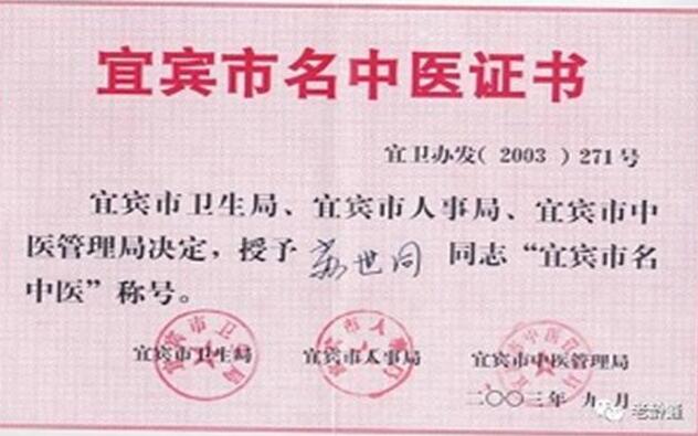 9、2003年被聘任宜宾市中医学会内、妇、儿专委会委员。同年被宜宾市卫生局、人事局、中医药管理局代表市政府评定,兼授予“苏世同同志宜宾市名中医”称号,兼授牌表彰。
