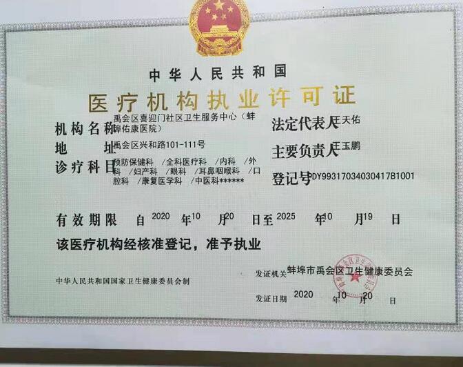 安徽蚌埠市禹会区佑康医院二楼中医科。