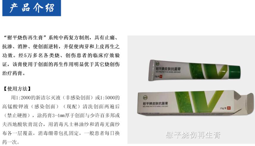 3、欢迎有实力的药厂、外商、投资公司、其他老板参与“慰平烧伤再生膏”的研制开发国药准字号,该产品造福人类,前景看好,前提是:该项目“技术股+资金股”本门诊部必须控股。