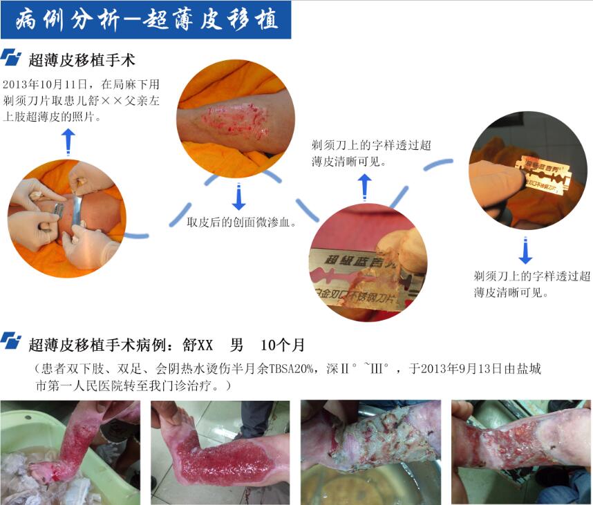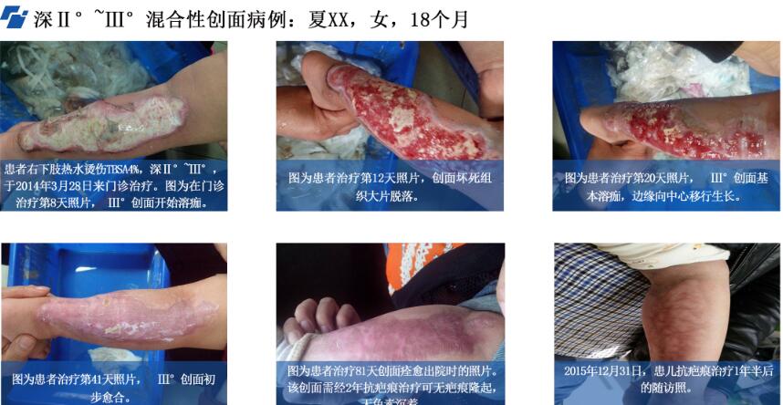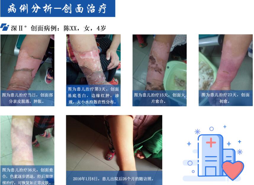 擅长治疗各种烧烫伤、深度皮肤擦伤、疤痕、外伤性难愈创面、褥疮、冻疮及各种皮肤溃疡,并适用于刀伤缝合后的创面修复。无需住无菌病房,绝大多数深度烧创伤可不植皮、不致残、无疤痕;大面积患者全程医疗费用约是地市级医院纯西医治疗的30%左右。