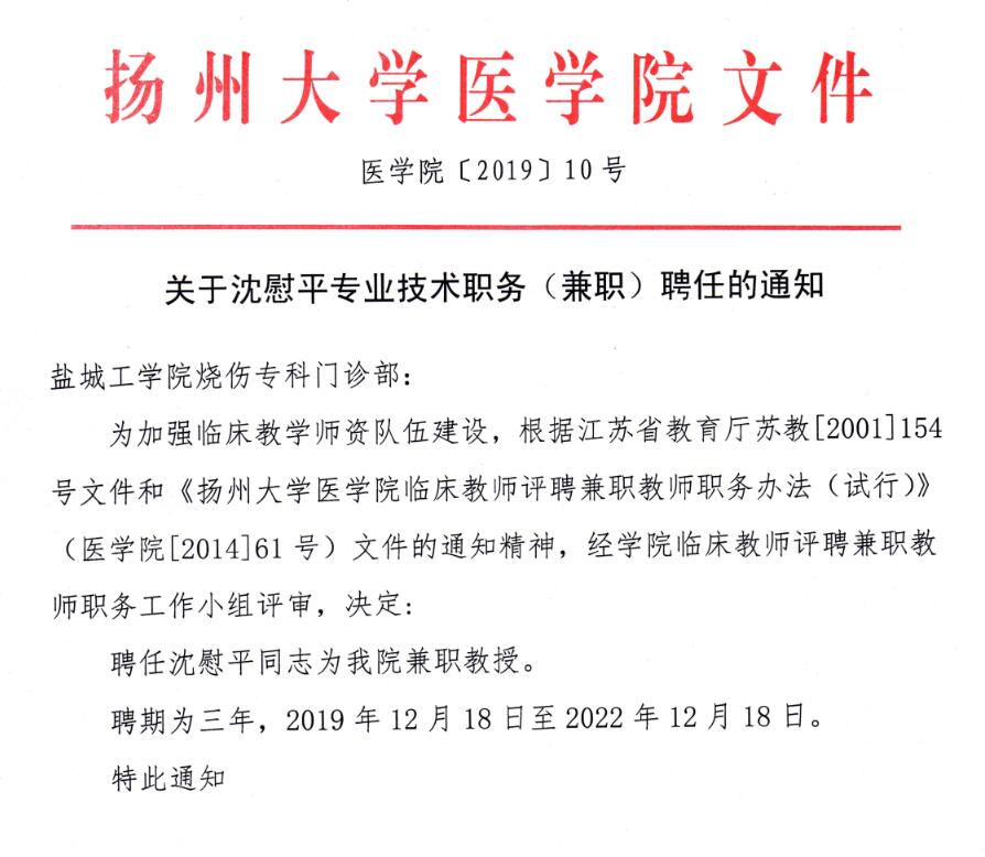 20、2019年12月18日被扬大医学院聘为兼职教授(聘期3年)。