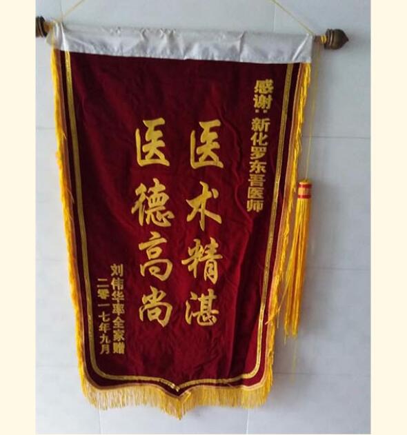 2020年5月16日,新化县狮子山公园游人如织,热闹非凡。在公园大门口的东面有一栋红色的楼房,新化名老中医罗东吾先生就住在这栋楼的二楼上。宽敞的客厅里也如旁边的公园一样热闹,家里来了很多的客人。他们有的是来这里看病,也有的是病愈后来感谢罗医生的。客厅里红色的锦旗与快乐的笑声交融,如同暖阳下的公园,呈现出一片祥和的景象。