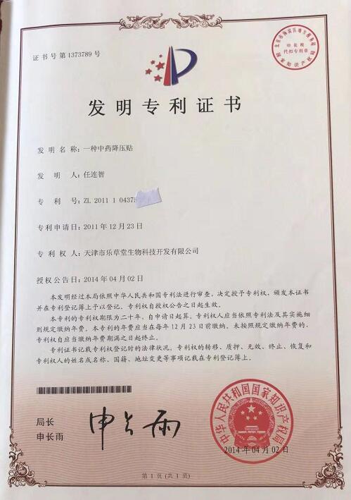 4、发明专利《体外中药降压贴》。