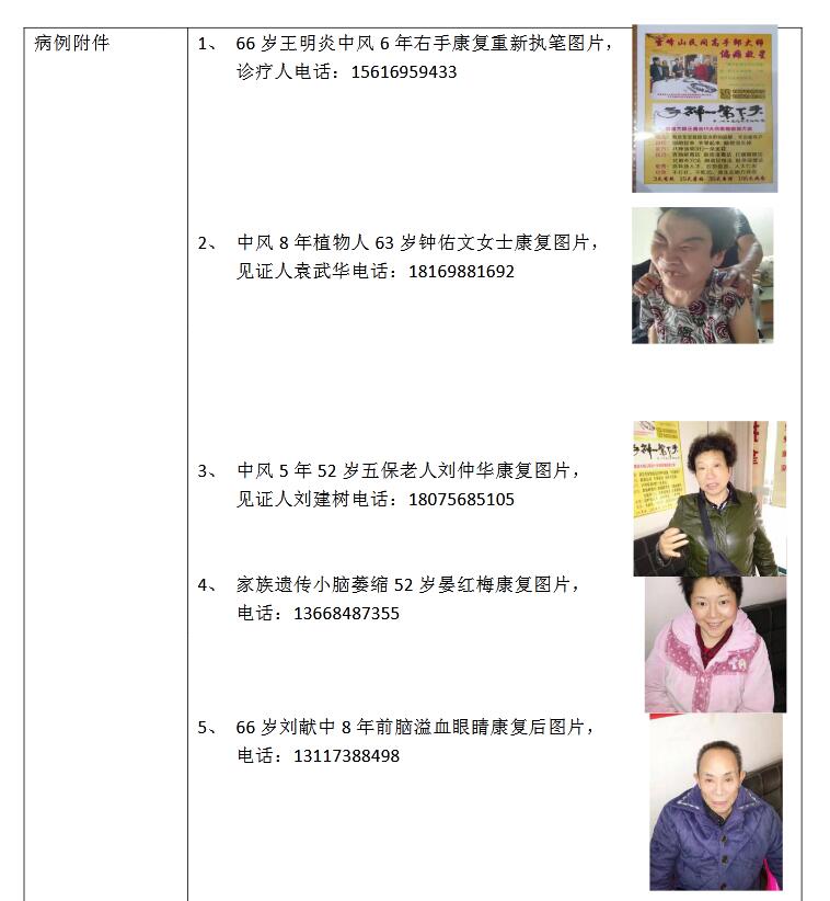 1、2017年9月到北京清华大学东方美术院,第一次为意致文化产业公司副总经理曾辉的舅舅用祖传秘方医治。一个星期7天不但手、脚功能完全恢复,并且至今能正常跑步。