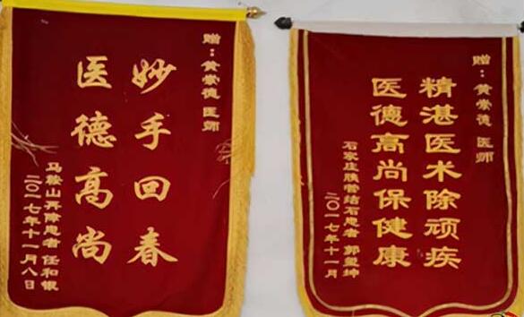 6、2013年一天下午,一个马鞍山人带她15岁孩子来到黄崇德诊所,面带恐惧表情,哀求到:“黄医师,请你救救我孩子吧!.......”,问你孩子怎么了啊,她说:“南京一个大医院说我儿子患了再生障碍性贫血,下3次病危通知书,我就把孩子带来求您了.......”,孩子虚弱,大便拉纯血,黄崇德急中生智只有给对症治疗给中药10剂,吃完来复诊,母子都喜笑颜开了,一共开中药40剂,吃完35剂病痊愈,至今健康,也不用吃什么药维持。