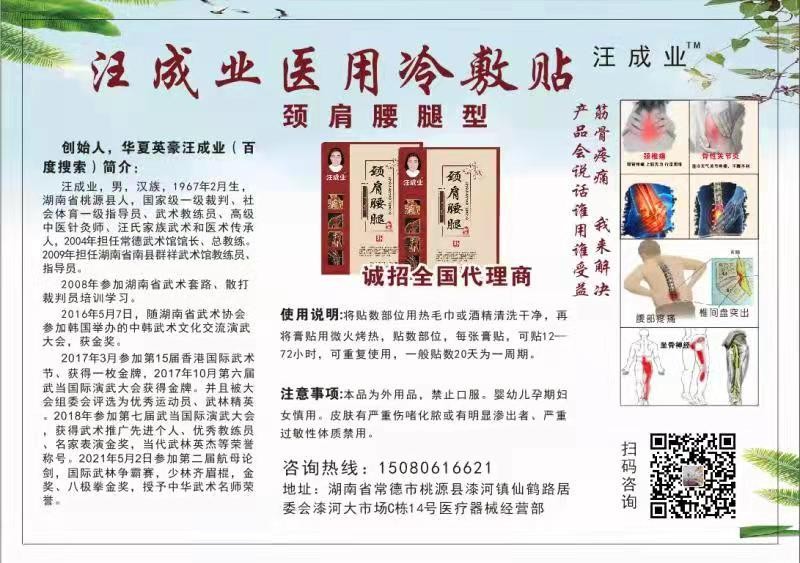 汪成业中医从跟随家人认识中草药,学习中医技术,在祖传秘方的指引下,经过四十几年医疗临床实践经验,几千例患者病例验证,取得优异的医疗成果。擅长对骨病的诊断和治疗,有针对性的对患有骨质增生,腰间盘突出,风湿骨病等骨病的患者人群进行了二十多年的临床实践和研究,通过对几千名患有不同程度骨病的患者进行汪成业颈肩腰腿疼型医用冷敷贴调理,效果显著。