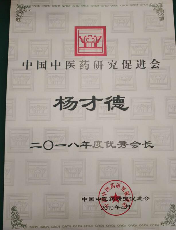 2021年5月,获得中国中医药研究促进会2020年度优秀会长称号。
