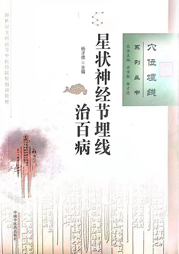 《星状神经节埋线治百病》主编,中国中医药出版社,新世纪全国高等中医院校创新教材;