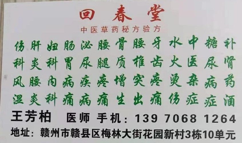 1、王芳柏行医40多年,继承祖业秘方,研究出各种有效治疗奇难杂症的秘方:“三清散井冈凉茶凉药”,“四合一自己按摩疗法”,“骨质增生、椎间盘突出、关节炎外用发泡疗法”。
