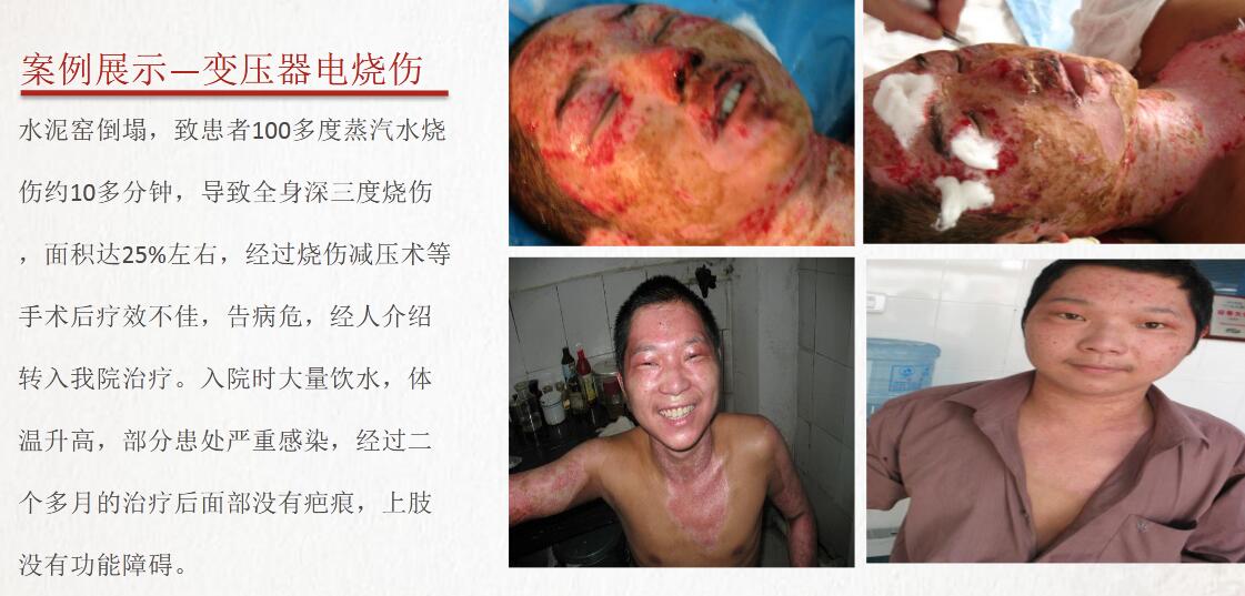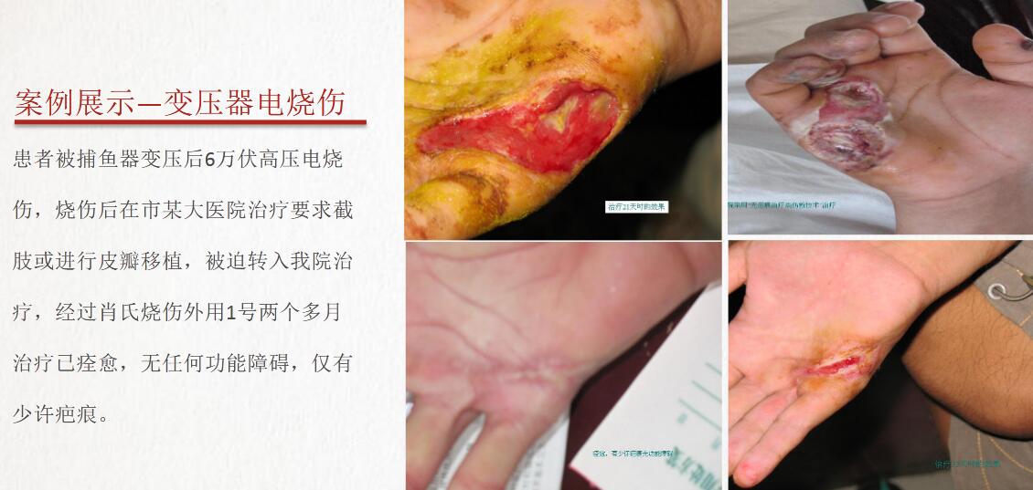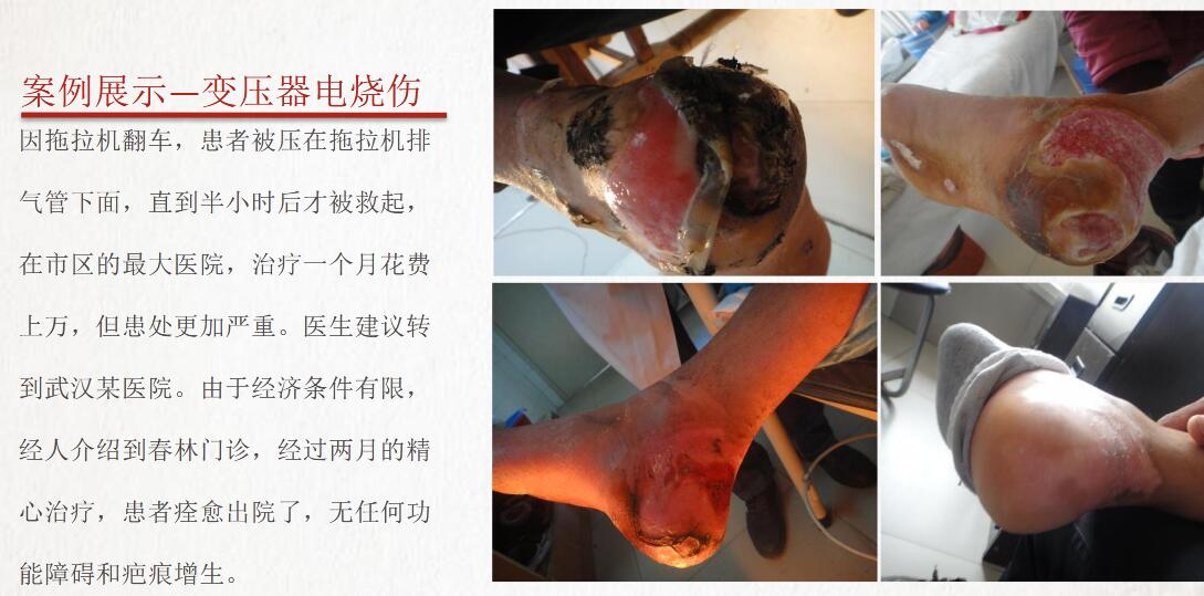 擅长中西医结合治疗颈椎病,腰椎间盘突出,骨质增生,膝关节积液等骨病疑难病!治愈骨病四万多人,最长时间达三十多年(父亲三十多年前治愈的)不复发,农村患者愈后一直参加各种重体力劳动。治疗烧烫伤,具有不植皮,不隔离,抗感染,疤痕少等特点,3一7天可以改变烧伤脱水症状,挽救患者生命!我们承诺:百分之六十以下烧伤治不好全额退款,面部烧伤如有疤痕全额退款!欢迎签约治疗!