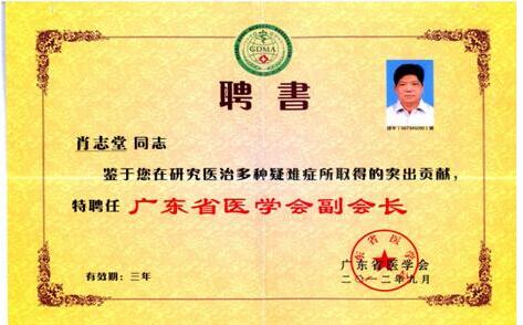 肖志堂,广东人,中医执业医师,主任中医师,深圳志堂中医综合诊所所长,深圳市康安堂专家、董事,深圳清华大学研究院健康管理及民族医药物特色诊疗研发中心客座研究员,中国医疗保健国际交流促进会中老年保健专业委员会常务理事,北京中西医慢病防治促进会全民健康(中医药)发展工作委员会理事长。