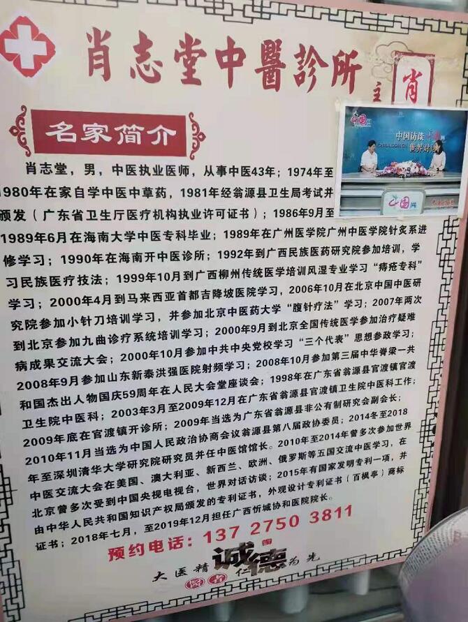 2018年在中国大健康产业高峰论坛中,其深圳志堂中医综合诊所荣获“2018年中国当代最具责任医疗机构”荣誉称号,并接受了央视采访;