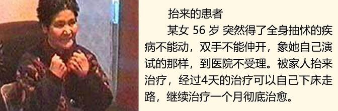 常规中医与西医在治疗神经类疾病的时候往往不尽人意,中医往往认为瘫痪或者局部身体运动失去运动功能是不能治愈的。西医认为这种由于神经损坏引起的疾病也是不能治愈的,是因为神经组织是不能再生的。是不可修复的。常规用药治疗疾病往往都会得到同样结论。可是用中医创新理疗仪器治疗非常成功,完全恢复正常,事实改变了人们的理念。下面介绍治疗的过程及其原因分析。