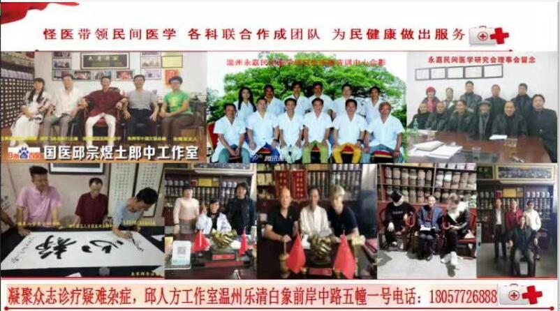 温州民间怪医邱人方老师出生于浙江省永嘉县茗岙石坑村,父亲是道教名师,祖辈传承着道教医学中草药秘书,常常为地方老百姓治病救人,名传温州五县。他从小随父亲学医,亲眼目睹其父治疗瘿疬、瘰疬“淋巴结核”常用一帖灵,肿瘤病人治愈不少,他问父为什么不把癌症来治疗呢? 父 说他不知天高地厚,要把癌症治好了,除非华佗来转世。想想这些 病情大 医院也治不好,给父亲一点草药就治愈,觉得中草药的效用奇妙。后来迷上了中草药的研究与病理分析,从父亲去世后走遍名山隐寺,寻访传承中医药高人,后遇四川回族何师傅的指导,成为全科诊疗的怪医。到处行医设立医馆,诊疗愈病患者也不少,诊疗名气越来越大,由于病人太多忙不过来,而再三转移阵地,真是闻所未闻的千古奇亊。