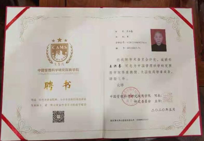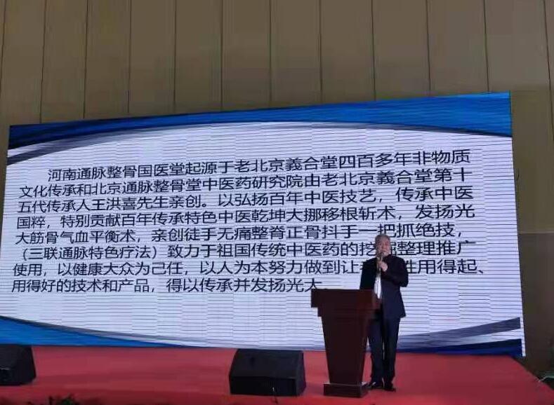 王院长通脉整骨国医堂中华老字号由四百年老北京義合堂第十五代传人王洪喜先生创立。并担任河南義合堂健康管理科技有限公司董事长、河南通脉整骨堂健康科技公司董事长,中国義合堂商会会长、河南省国际医疗保健互助促进会副会长,北京中西医慢病防治促进会基层医疗健康工作委员会理事,被聘任为中国管理科学研究院商学院客座教授、大国医药智库大囯医者成员,并命名为“共和国建设默默无闻基层功勋人物称号”入编国家记憶人物大典。