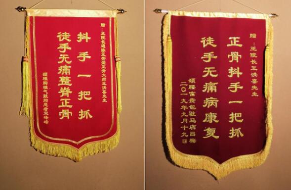 王洪喜先生临床四十多年如一日,救治因病痛丧失劳动力,长期卧床不起,活动受限,痛苦不堪的病人数不胜数,锦旗牌匾感谢信挂满了通脉整骨堂的楼上楼下。