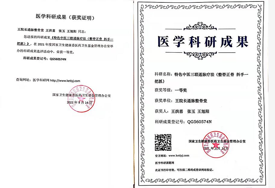 中华老字号——通脉整骨国医堂王院长通脉整骨国医堂专注于风湿骨病、人体骨关节康复,专业整脊正骨,致力于颈椎、胸椎、腰椎间盘膨出、突出、腰椎滑脱、骨盆俢复、富贵包、滑膜炎、强直性脊柱炎、脊柱侧弯、股骨头坏死、风湿及类风湿性关节炎等各部位寒凉,麻木庝痛。运用纯中医传承四百余年老北京義合堂、筋骨气血平衡术、三联通脉特色疗法、亲创徒手无痛整脊正骨抖手一把抓根斩术。不吃药不打针、纯天然非药物纯中医特色疗法、解除各种骨关节错位移位骨错缝,筋出窍引起的各种疼痛及形体矫正。