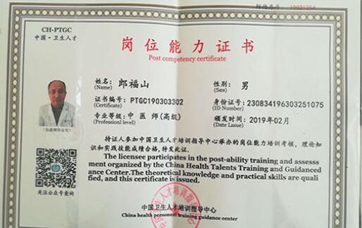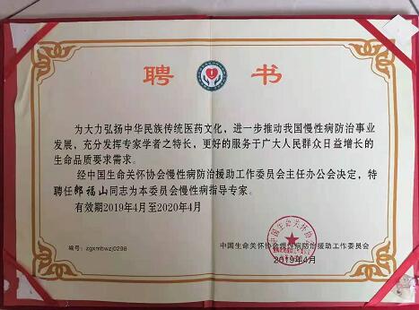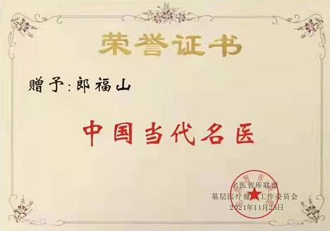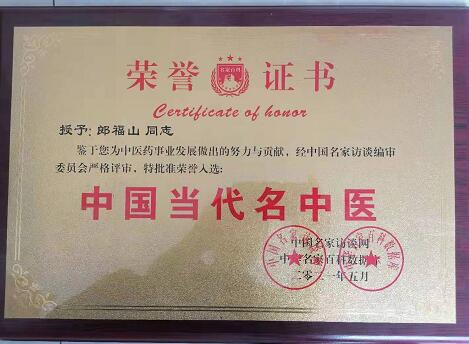 2021年5月获得由中华名家访谈网和中华名家百科数据库授于的中国当代名中医。