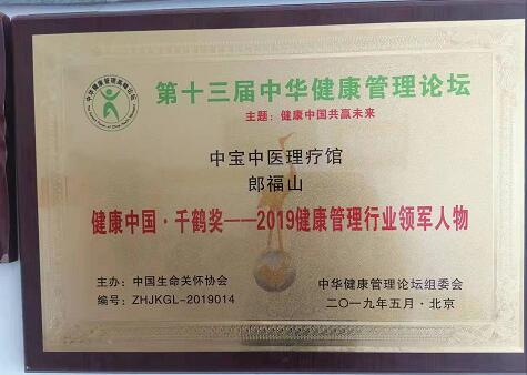 2019获得中国生命关怀会颁发的:健康(中国)千鹤奖健康管理领军人物。