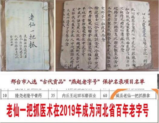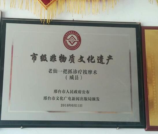 一、历史久远,以独特的按摩理疗手法,配合针法、膏药及秘方治病。传承600多年,从公元1414年历代遵守祖训,"老仙一把抓“医术是以非药物疗法按摩术为主,十八般推拿手法和七十二按摩架势,广传与山西,河北,山东一带,为当地民众无私奉献,默默传承,对社会奉献功不可磨。老仙一把抓诊疗按摩术的历史悠久,医术独特,是劳动人民长期实践和智慧的结晶。