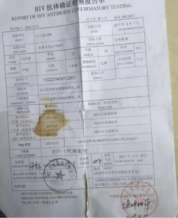 1、代应国,男,017年确诊HIV——1抗体阳性几经转折在张英杰诊所治疗,数月后医院检测报告转为阴性;