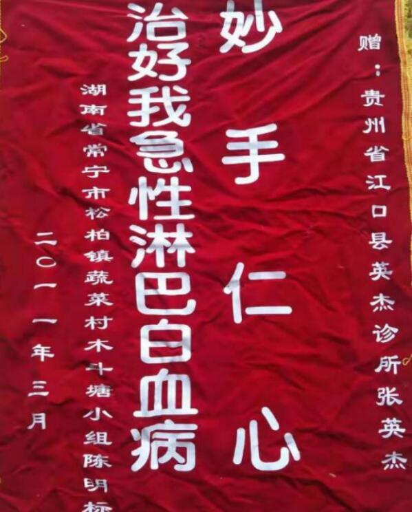 2、高邦杨的儿子高松,男,16岁,急性淋巴白血病,重庆西南医院骨髓移植一年后复发,医院无法治疗,劝其回家不治了。吃中药一个月,骨穿缓解,吃9个月中药治愈,已好三年,贵州六盘水市中山公园路,电话: 13698594463。