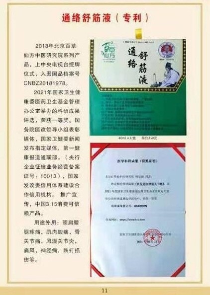 ⑤骨头疼痛液。2015年在北京召开科技项目论证报告,编号(2015)第420号颈腰椎速效液。