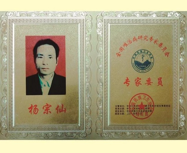 2014年6月被中国民族卫生,聘任为中国民族卫生协会培训部全国难治病研究专家委员会委员,2014年10月参加中国中医药创新临床案例交流会。11月并接受中国国际科技部记者采访杨宗仙。编入《协同创新驱动产业发展》书籍国发[2016]43号,于2016年7月28日国务院批复(此件公开发布)。2014年12月参加第五届全国名老中医临床技术高峰论坛,为发扬中医中药提出建议,身份证、电话号码、签名按下手印。