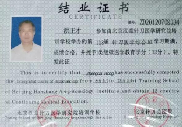 2012年退休后自费到北京针刀总医院综合班118期学习,成绩合格取得结业证书。