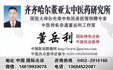 董岳利医生在行医过程中,为患者解除疾病所带来的痛苦,不计其数,在不断专研医术的同时,把祖传的物理电能与人体生物电能相结合,利用中医经络,通者不痛,痛者不通的原理与中医解刨学及化学对人体电解质存在正负电荷的观点,用人体转换将外界物理电能转化为人体生物电能,在极短时间内针对患者的病体经络状态,为患者疏通经络解除痛苦,之后再利用中医特殊技术进行巩固治疗,达到彻底治愈的功效。