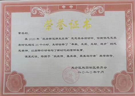 2020年董岳利被齐齐哈尔市龙沙区人民政府授予:最美逆行者抗疫真英雄勋章称号,其企业被授予:鹤城老字号、315信誉企业。