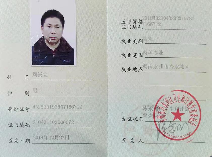 周崇立,湖南永州人,中医世家,西医毕业于永州职业技术学院,中医毕业于南华大学,中药学毕业于长沙医学院,湖南省中医中药慢性病研究会会员,湖南省江华瑶族医药协会会员。