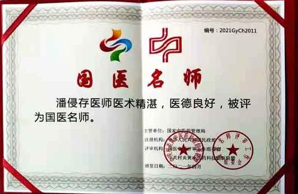 潘侵存在国内外发表论文60多篇,代表作有“癌敌胶丸治癌”、“地黄饮子汤加减治疗偏瘫”、“加减通窍活血汤治疗脑震荡后遗症”、“化石散治疗各种结石”、“结核丸治疗各种结核”、“青松不老人可长寿”。以上论文均获得国家级优秀论文一等奖。并获得国家级“华医英才”、“振兴中医科技进步”中医突出贡献勋章三枚。