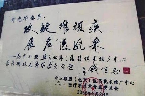 邹光华,江西新余人,中医特色疗法传承人,中国当代名中医,前国务院总理李鹏亲笔题词《中华名医大辞典》入编专家,北京中西医慢病防治促进会——歧黄薪火传承推介工程工作委员会副会长,主张“诚信为本,健康第一 ,爱心天下”!