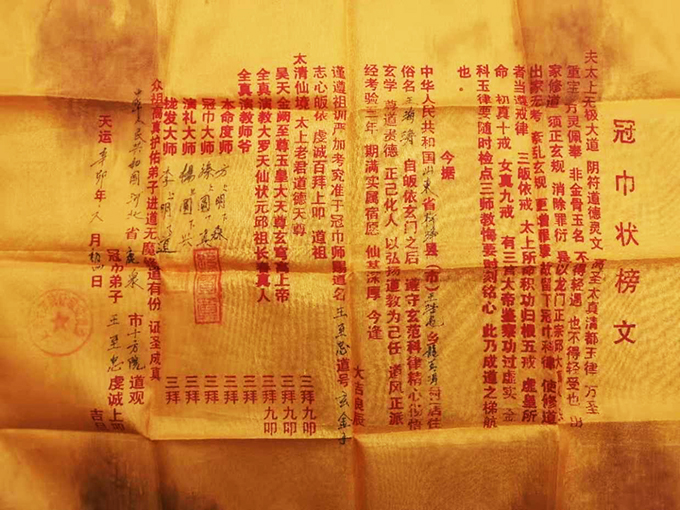 2011年底去河北十方院进修,在十方院冠经,本命度师方上明下森、冠巾大师孙上圆下真、演礼大师杨上元下兴、拢发大师李上明下道。众祖高真护佑弟子,进道无魔,修道有份,证圣成真。中华人民共和国河北省鹿泉市十方院道观,冠巾弟子王至忠。虔诚上扣天运辛卯年六月初四日。后又返到清华洞,得到上圆下兴师爷的真传。