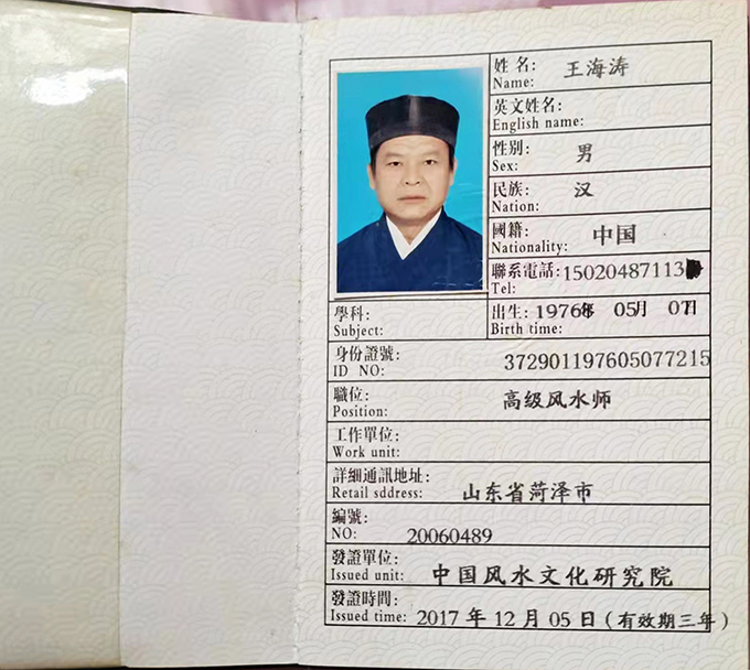 2017年被中国风水文化研究院高院院长高燕邀请到人民大会堂开课讲演。同年很荣幸考出了中国高级风水师资格证。