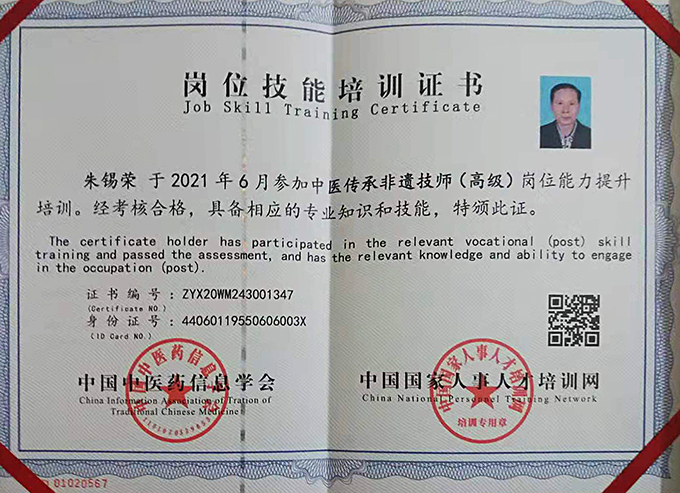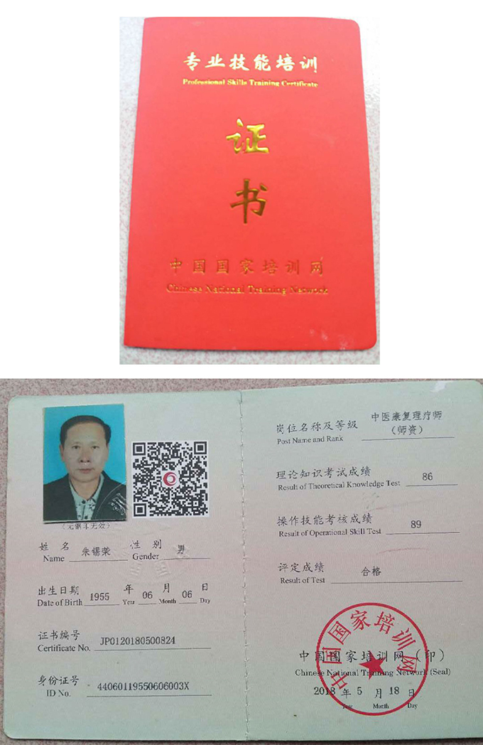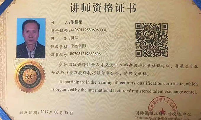2017年获国际讲师注册人才交流中心颁发的中医讲师任教资格
