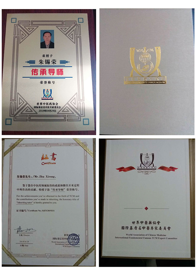 世界中医药协会国际基层名中医专家委员会在2019 年 4 月 29 日授于传承导师荣誉称号