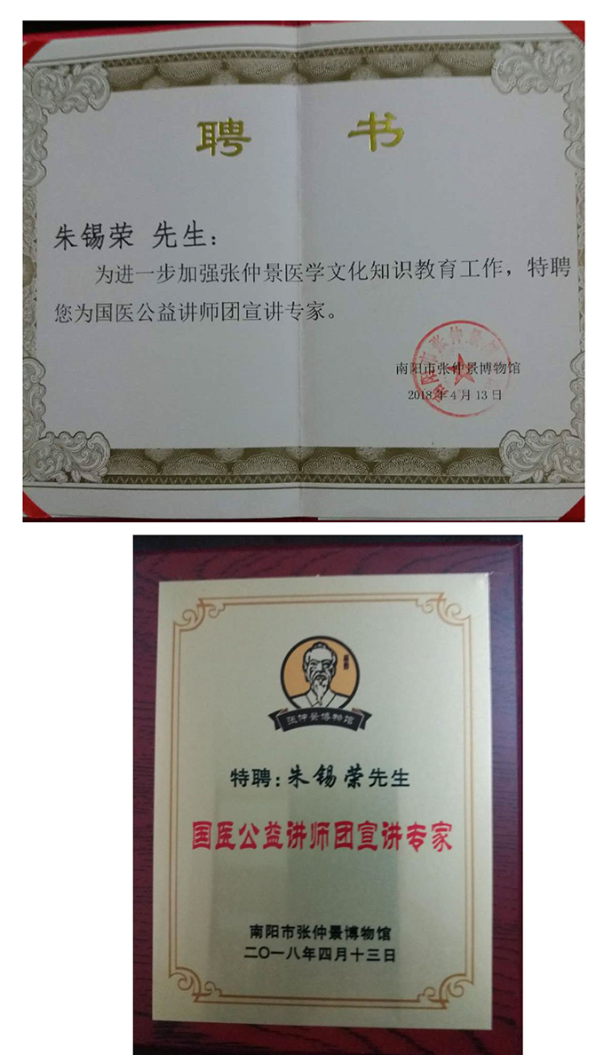 河南省南阳市张仲景博物馆在 2018 年 4 月 13 日特聘本医师为(国医公益讲师团宣讲专家)