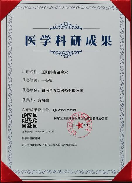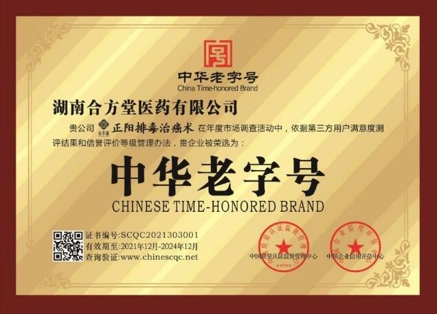2021年被收录中华名医薪火传承录,2021年12月“正阳排毒治癌术”获中华老字号;