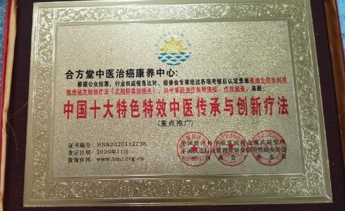 2020年11月“正阳排毒治癌术”获中国十大特色特效中国传承再创新疗法;