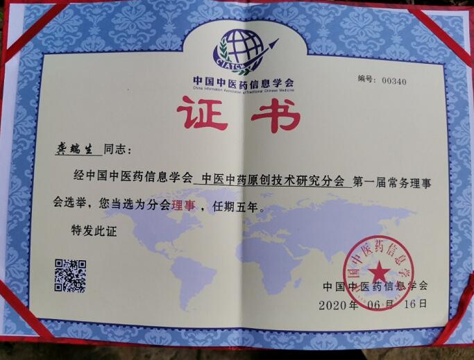 2020年3月被中国民族卫生协会健康养生分会特邀为首席专家;6月被中国中医药信息学会当选为中医中药原创技术研究分会理事;7月被中和国医(北京)国际医学研究院聘为康复理疗科专家委员;被中国民族卫生协会收录为中国基层卫生人才数据库专长人才和中医药杰出人物,9月由中国医药教育协会颁发《中医疑难病特效疗法专家特殊贡献人物》,被华医头条网聘为健康顾问委员;