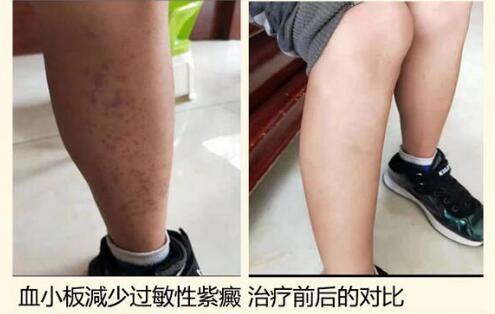 案例二:谢某某,男,九岁,兴义市人 ,经昆明某某医院诊断为血小板减少过敏性紫癜。经过西医治疗 ,反复发作 。于2019年3月31日来诊:双下肢肿胀, 踝关节疼痛 ,疹色暗红 ,于3月31日开始服中药至5月3日症状基本消失 ,并继续服中药至6月9日停药 ,至今未再复发 。此案例多,药效真实 ,治愈病例至今无一例复发 。