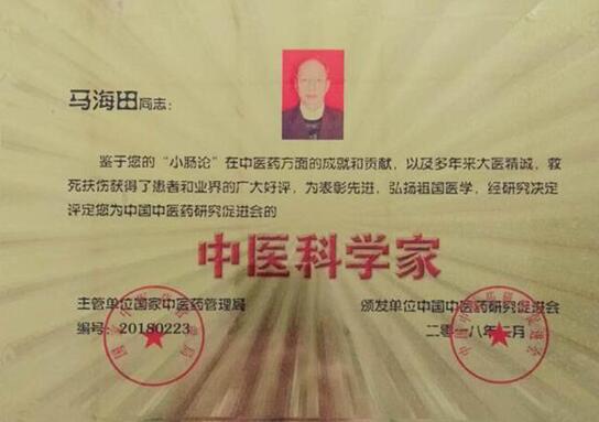 3、马海田本人在第二届中医大师学术传承高层论坛上被评为“中医大师”,目前还担任全国养生保健指导中心首席专家,中国医疗保健国际交流促进会中老年保健专业委员会常务理事。曾荣获中医特色医疗创新楷模人物荣誉证书,并授予勋章一枚。