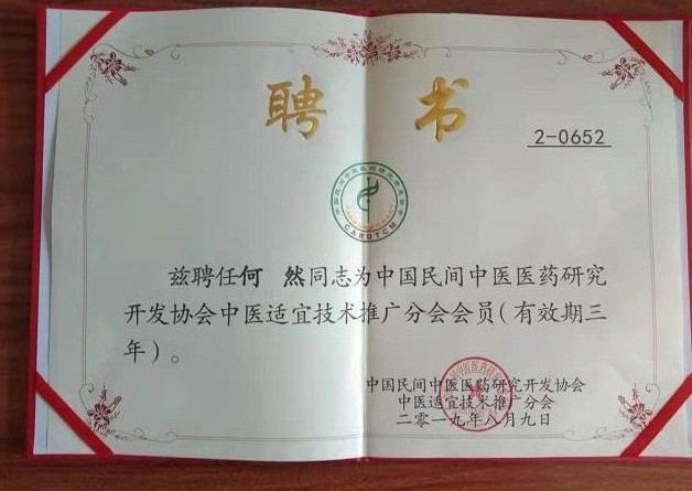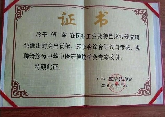 何然,河北省涿州市人,中医世家,祖传正骨第三代传人,高级按摩师,针灸师,膏剂师,养生指导师,何氏筋骨科创始人,中国健康促进协会健康教育专家,中华中医药传统学会专家委员,中国民间中医研究开发协会中医适宜技术推广分会外治专家组专家,国家中医治未病工程委员。何然用祖传技术,祖传药物,研究开发治疗各种骨科疑难杂症,融神学、医学、武学为一体,又称天地人的自然疗法,内病外治,解决患者的痛苦,并攻克多项世界难题,做到精益求精,对症下药,治愈率达90%。