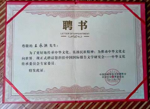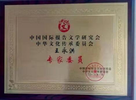 2018年1月被中国国际报告文学研究会中华文化传承委员会聘请为专家委员,同时被载入《大国崛起》大著中;