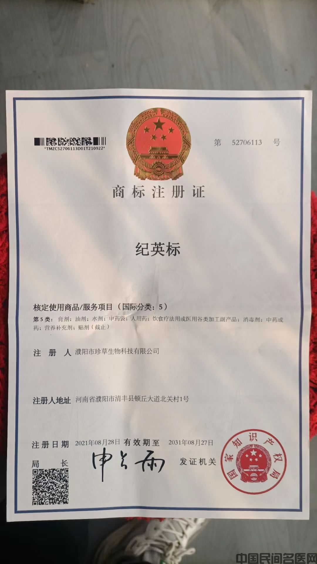 姓名:纪国箱,男,78岁,河南省濮阳市清丰县,小学校长。40余年的气管炎,后来发展到肺气肿,用穴位贴敷调理,现在肺部良好,用西医拍片,已不再显示肺气肿,气管炎症状。