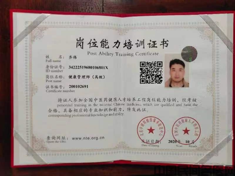 2013年14年和夫人在淮北市注册开办了三家《吉祥泊车管理有限公司》正当生意兴隆,事业成功之时夫人查岀得了重病,即放下公司和一切事务,自驾车全国各地遍访名医为妻治病,耗资数万遍访名医,怎耐回天乏术,专家判活不过当夜,无耐之际用自学功夫和中医技术使妻子当时恢复正常,从此痴迷中医苦心专研技术为妻调病,才使她少受病痛折磨延续生命,2015年妻走后万念俱灰,决定后半生专注于研究中医徒手技术!于2017年创立注册了淮北市(齐缘堂),2018年有缘和现任妻子静心老师走到一起于2019年注册了苏州(齐缘堂),并徒手调愈了无数患者和无数的疑难杂症和公益传授了无数的全国各地热爱中医养生的优秀学生,并取得了一定的技术成果!