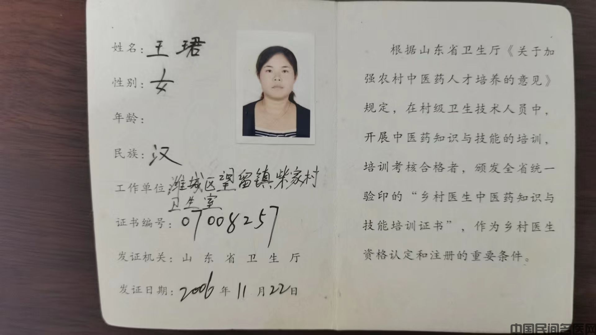 从事乡医工作十六年。一九九六年毕业后一直跟随父亲在潍坊市潍城区望留卫生院学习中医十余载,后期能够独立诊断病情、开方,辨证施治。