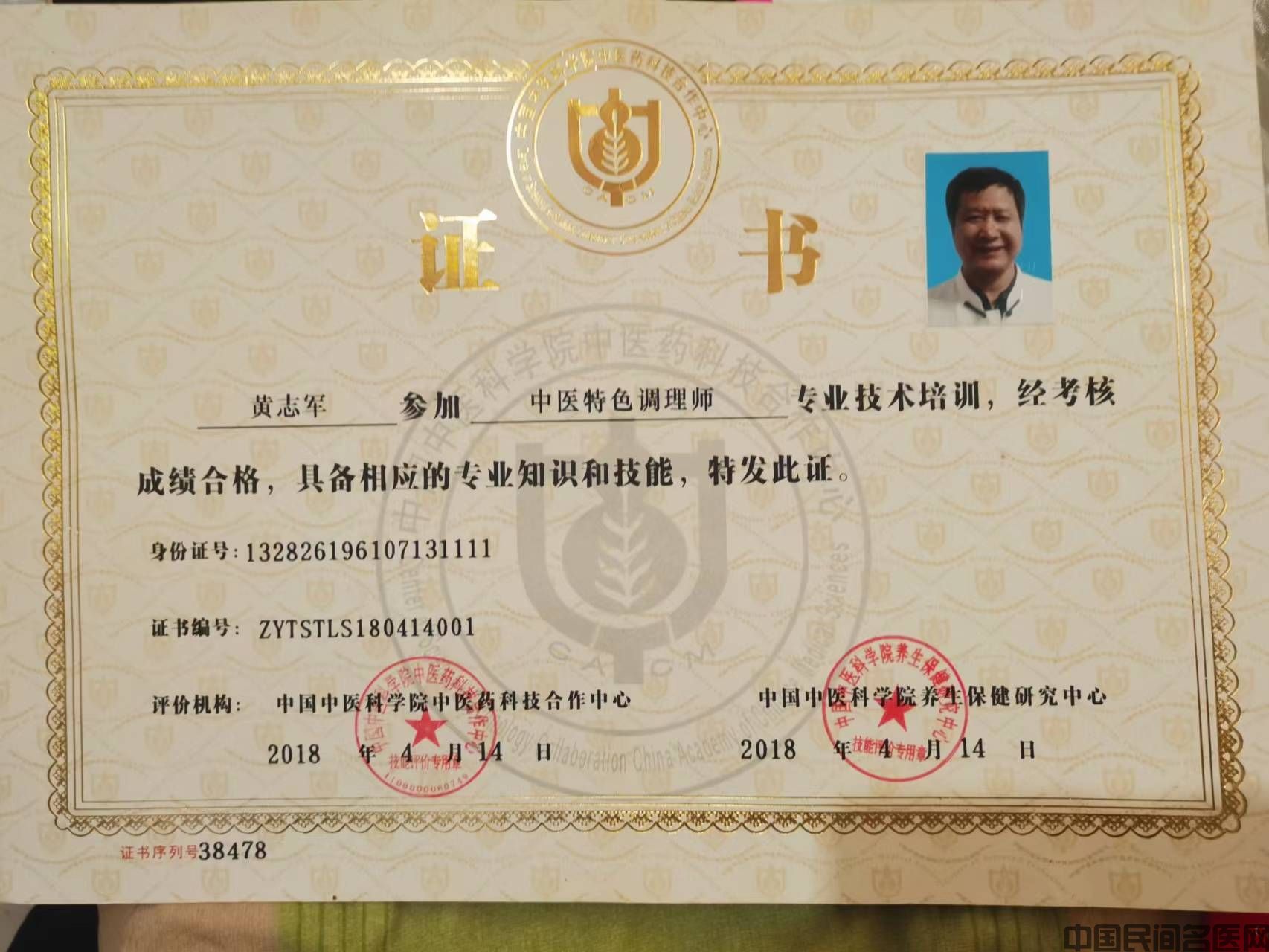 特长:正骨按摩 姓名:黄志军 年龄:62 族别:汉 籍贯:河北 学历:大专